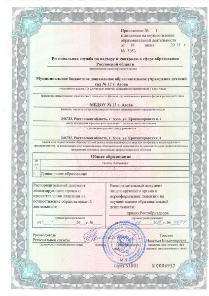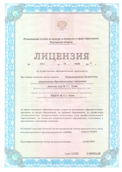 Полное наименование образовательной организации* Муниципальное бюджетное дошкольное образовательное учреждение детский сад № 12 г. Азова